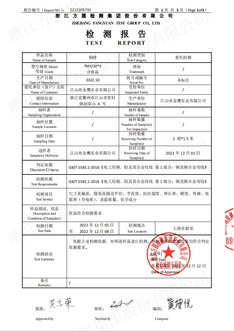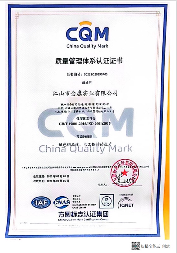 江山市金鷹實(shí)業(yè)有限公司,地處江山市賀村工業(yè)園區(qū)趙家山4-1號(hào),占地面積18000M2,建筑面積約15000 M2。原主要生產(chǎn)、銷(xiāo)售“金鷹、金盾、JYD”系列地彈簧產(chǎn)品,是國(guó)內(nèi)唯一二次參與制訂地彈簧國(guó)家標(biāo)準(zhǔn)的專(zhuān)業(yè)生產(chǎn)廠(chǎng)。企業(yè)曾榮獲“省級(jí)先進(jìn)企業(yè)、文明單位”等殊榮。所生產(chǎn)的系列地彈簧產(chǎn)品,被國(guó)家及省有關(guān)部門(mén)評(píng)定為“省優(yōu)產(chǎn)品、質(zhì)量信得過(guò)放心產(chǎn)品、高標(biāo)準(zhǔn)嚴(yán)要求制造產(chǎn)品”等稱(chēng)號(hào)。并于2002年通過(guò)了“ISO9002方圓質(zhì)量體系認(rèn)證”。隨著國(guó)內(nèi)用電水平的不斷提高及高低壓電網(wǎng)改造的需要,公司及時(shí)捕捉市場(chǎng)對(duì)電工銅排和紙包繞組銅扁線(xiàn)需求的機(jī)遇。通過(guò)自籌資金,改建廠(chǎng)房,新購(gòu)成套先進(jìn)生產(chǎn)、檢測(cè)設(shè)備。建成了目前國(guó)內(nèi)自動(dòng)化程度最高,加工精度最優(yōu)的電工銅排和紙包繞組銅扁線(xiàn)生產(chǎn)線(xiàn)。